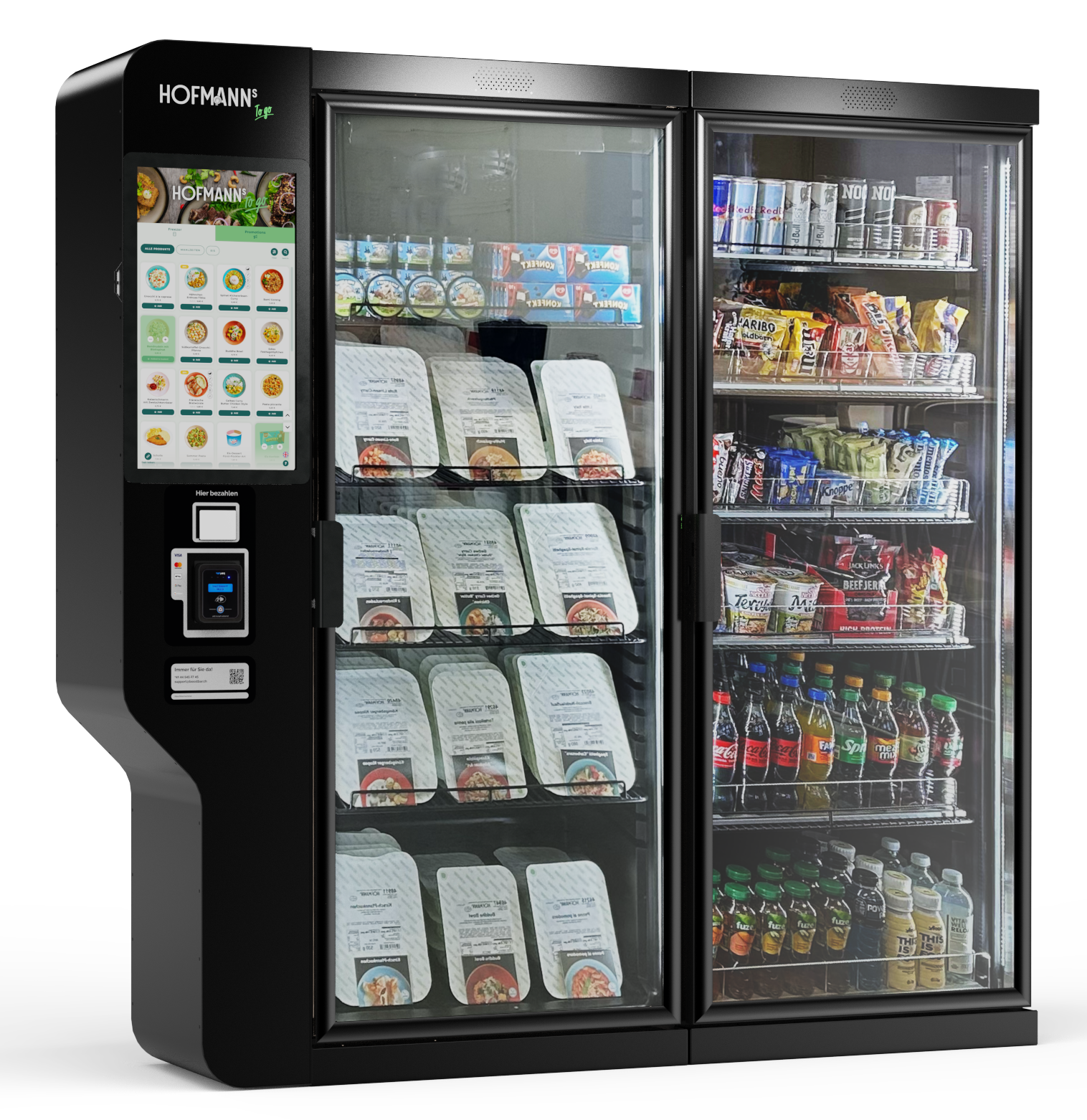 Unser smarter Essensautomat hat immer die passende Auswahl, egal zur welcher Tageszeit. Ideal für flexible Pausen, Schichtarbeit oder als Kantinenergänzung.